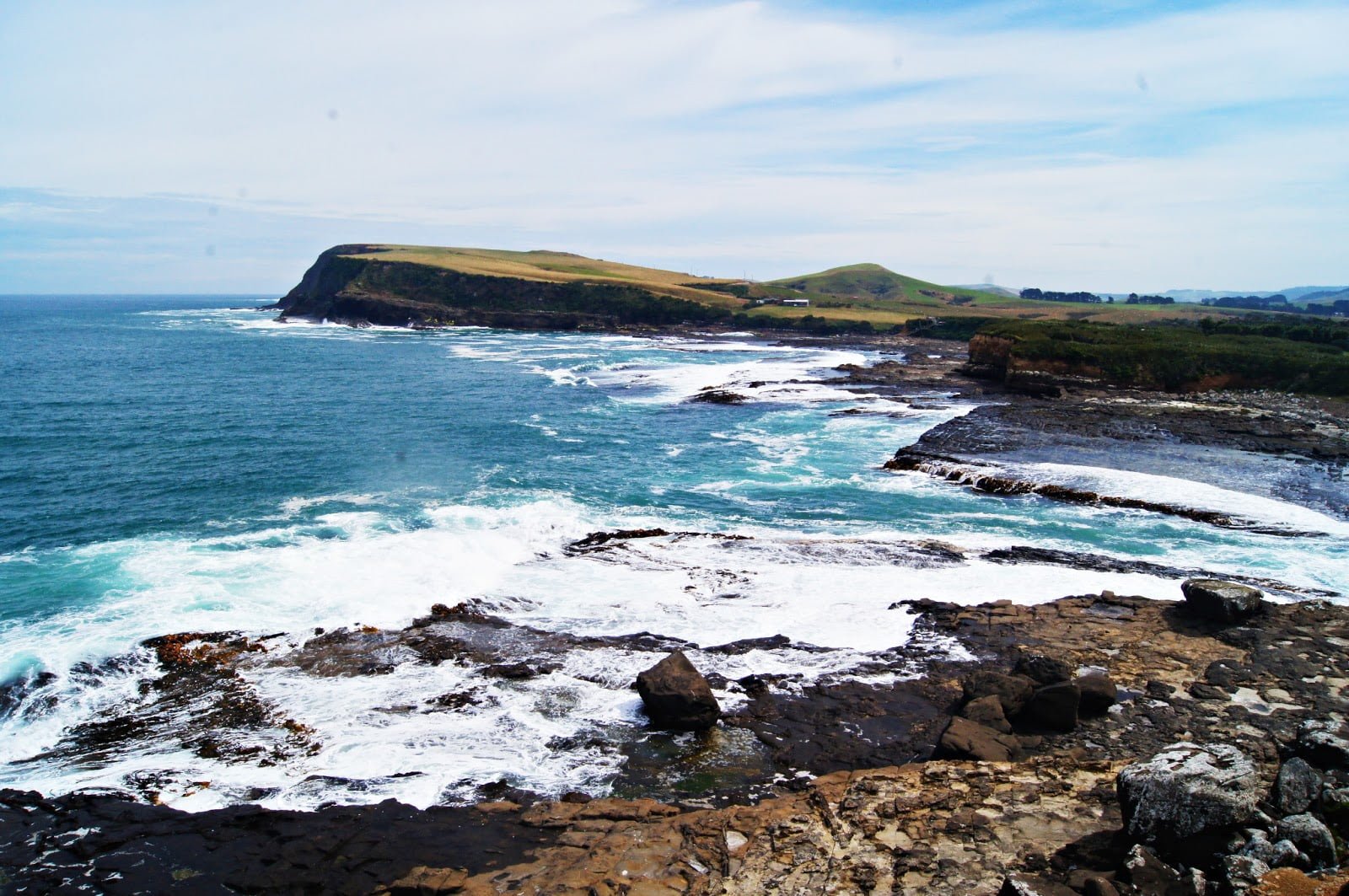 olas que rompían en las rocas de los espigones. Junto a Porpoise Bay