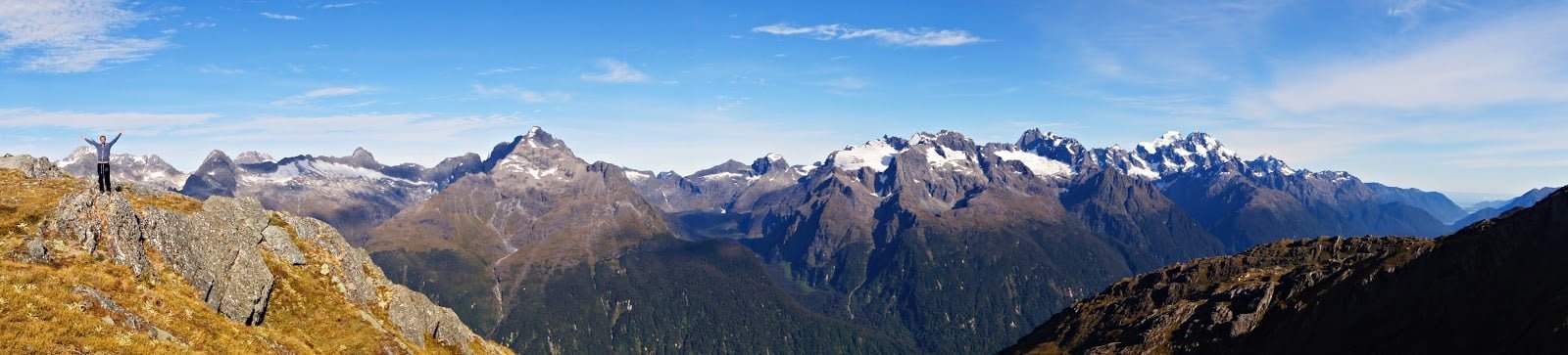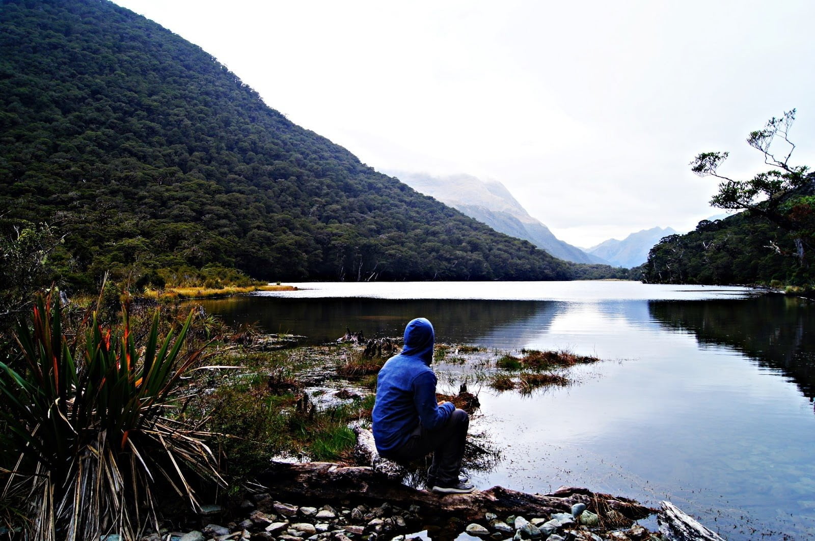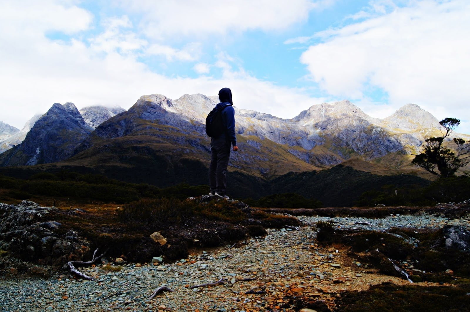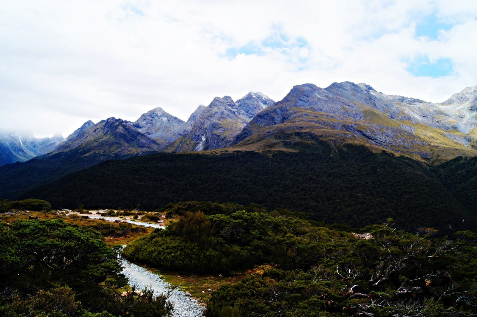 La primera empezaba en el parking de The Divide en nuestro viaje al Milford Sound. Ese día estaba un poco nublado pero todavía podíamos ver las montañas de alrededor aunque no estoy seguro de si se veían los picos más altos, me temo que no. Desde el parking empezamos a subir por un sendero que es bastante empinado, el paisaje del principio es bosque de los de cuentos de hadas, todos los arboles verdes y plantas que estábamos acostumbrados a ver por Fiorland.