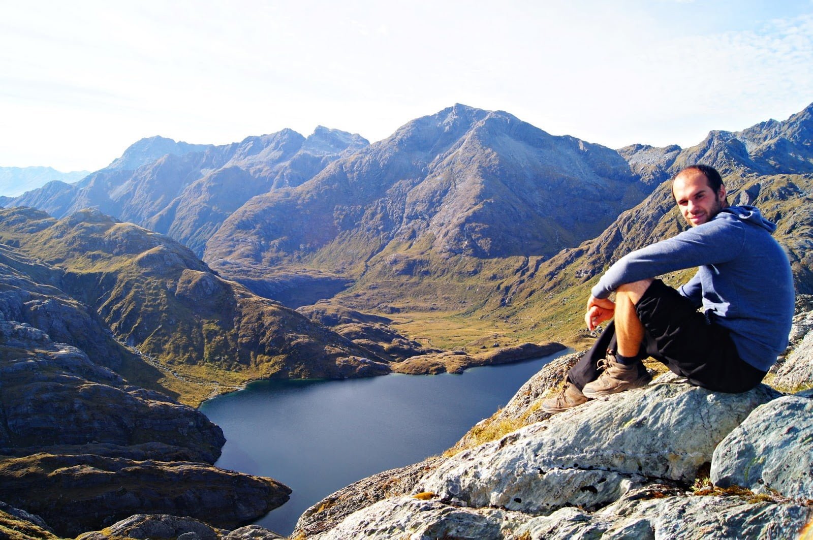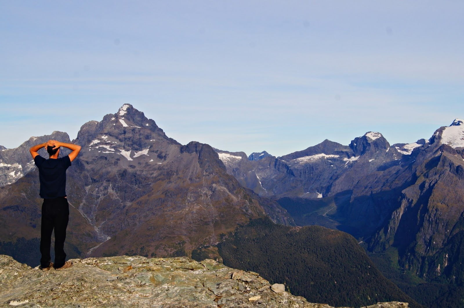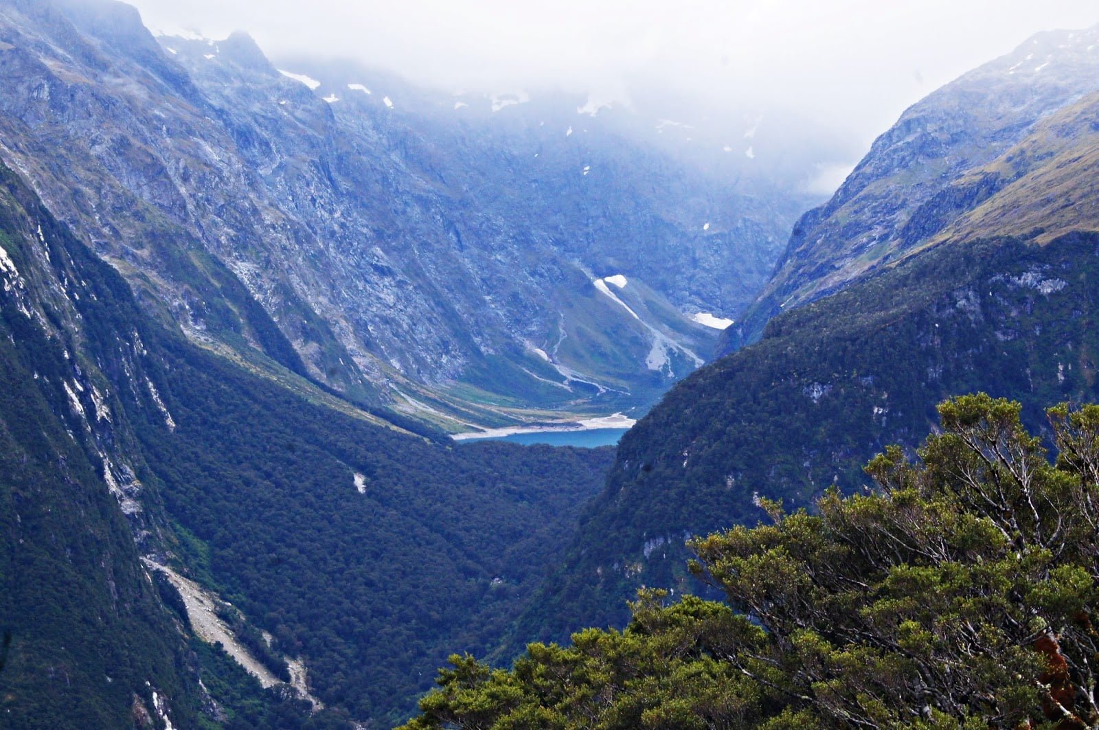 El sendero sigue empinado subiendo en zig-zag más o menos una media hora. Todo el esfuerzo merece la pena cuando estas arriba y te encuentras con semejantes vistas. Arriba en la cima hay hasta un pequeño lago muy especial por la altura y el paisaje que tiene a su alrededor, quizás la imagen que utilizan para animar a la gente a subir a este sitio. Desde ahí arriba vimos el Hollyford Valley, el Greenstone River Valley y hasta el lake Marian que haríamos al día siguiente y del que ya escribí en el post anterior a este. A la vuelta bajamos una cuesta muy empinada hasta el lago Howden, un lago muy tranquilo donde hay un hut. Después de esto volvimos al coche para seguir por la carretera del Milford Sound.