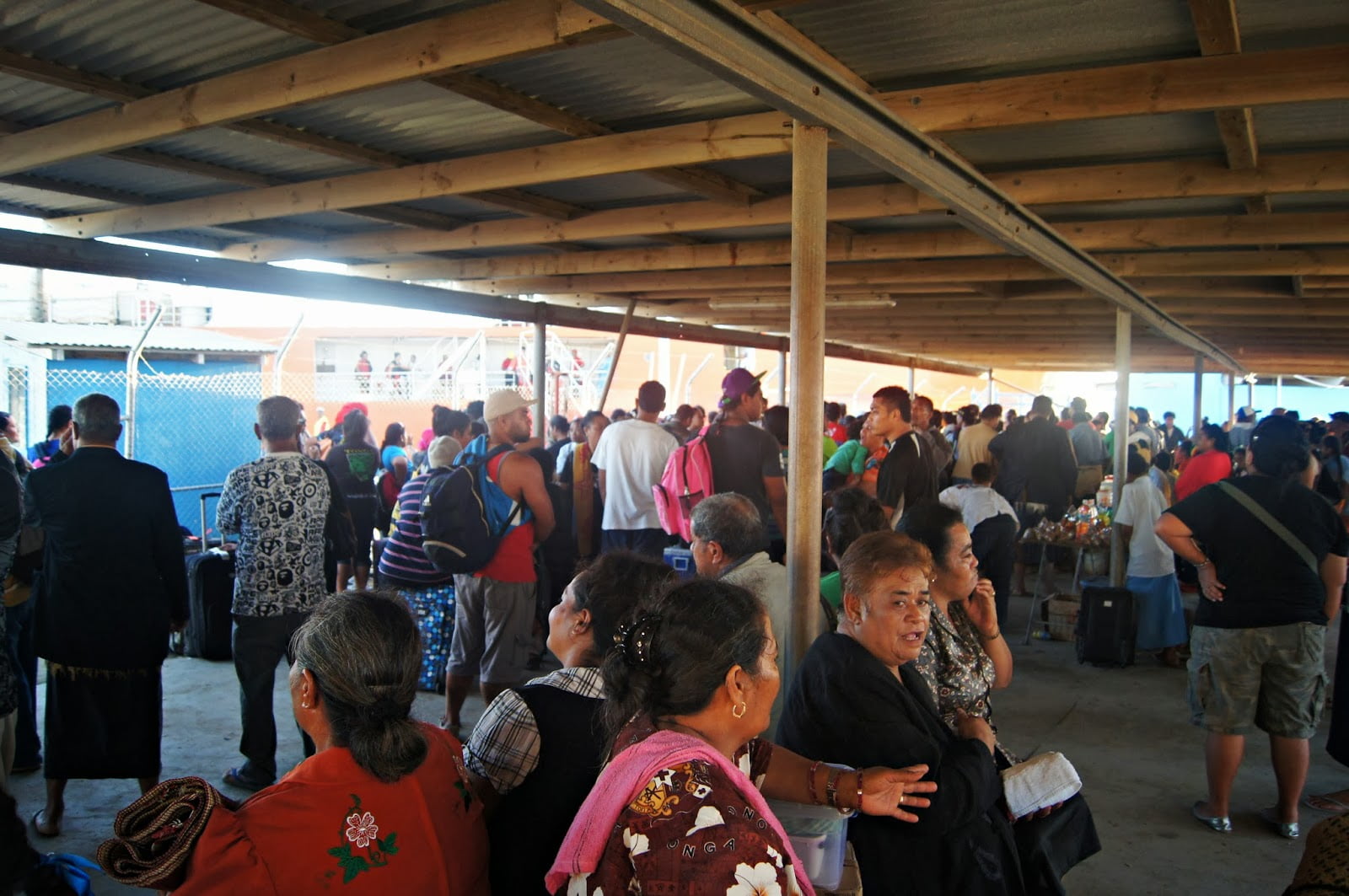 La aventura del viaje a las Islas Ha’apai empezó en el puerto de Tongatapudonde cientos de tonganos esperaban el barco para ir a las islas, un barco que tardaba unas doce horas en llegar a Pangai, la capital de isla principal llamada Lifuka del grupo de Islas Ha’apai. Como ya expliqué en el primer post, Tonga consiste en 3 grandes grupos de islas, Tongatapu y Eua, las Ha’apai y las más turísticas de todas (si es que se pueden llamar turísticas), las Islas Vava’u.