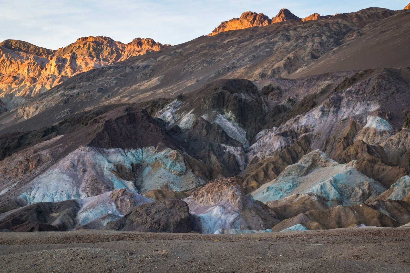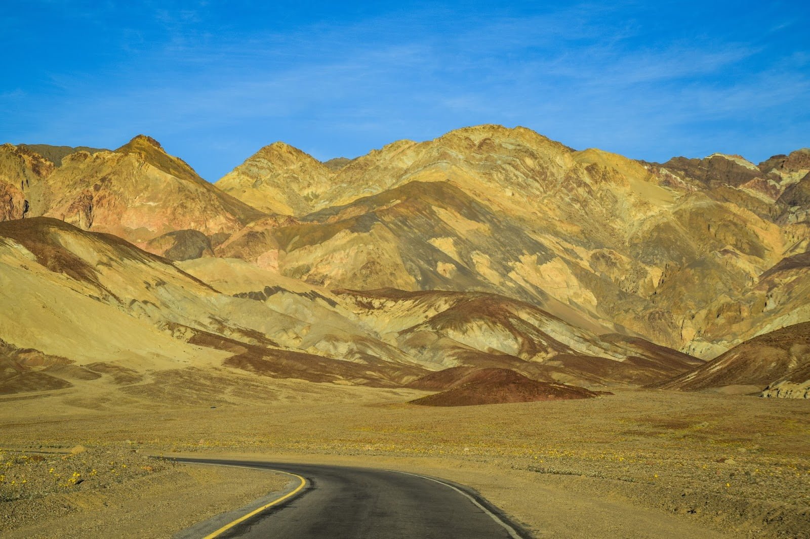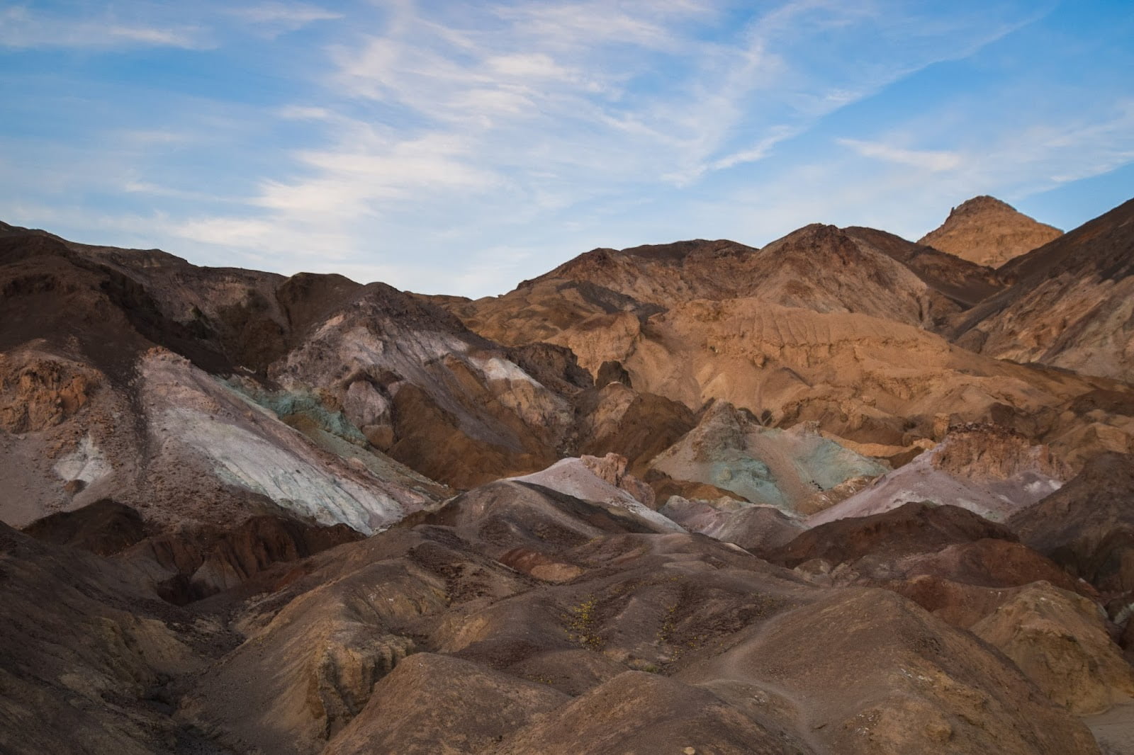 Otro lugar con paisajes especiales fuera-de-este-planeta es el llamado Artist Palette, es una carretera que te lleva por un lugar de erosión en el que se juntan diferentes colores naturales creados por los diferentes materiales de la tierra, todos juntos en un mismo lugar. Llegamos al atardecer, que es cuando los colores más se acentúan. Es extraño darte cuenta de que esos colores son de la naturaleza y no pintados por el humano, un cuadro de Picasso natural que hacen aún más especial a este valle con tantos secretos.