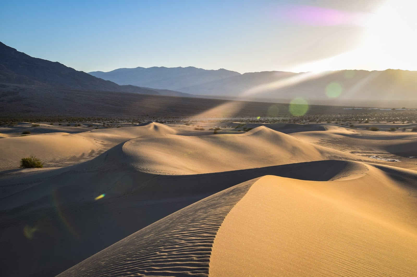 Lo primero que hicimos cuando llegamos al parque y pasamos por el centro de visitantes de Furnace Creek fue ir al atardecer que ofrece el desierto de Mesquite Flat Sand Dunes. Ya vimos el desierto de Kelso Dunes recientemente enMojave National Preservepero este es incluso más espectacular a pesar de la cantidad de gente que anda por las dunas. Se dice que para ir a estas dunas lo mejor es ir al amanecer o atardecer ya que la experiencia con las sombras que se crean con los picos de las dunas y las curvas interminables lo hacen más bonito aún si cabe. No hay camino a seguir, tú puedes andar libremente por ellas y ponerte donde mejor te venga en gana. Es uno de los lugares más conocidos para venir a ver estrellas de todo el parque.