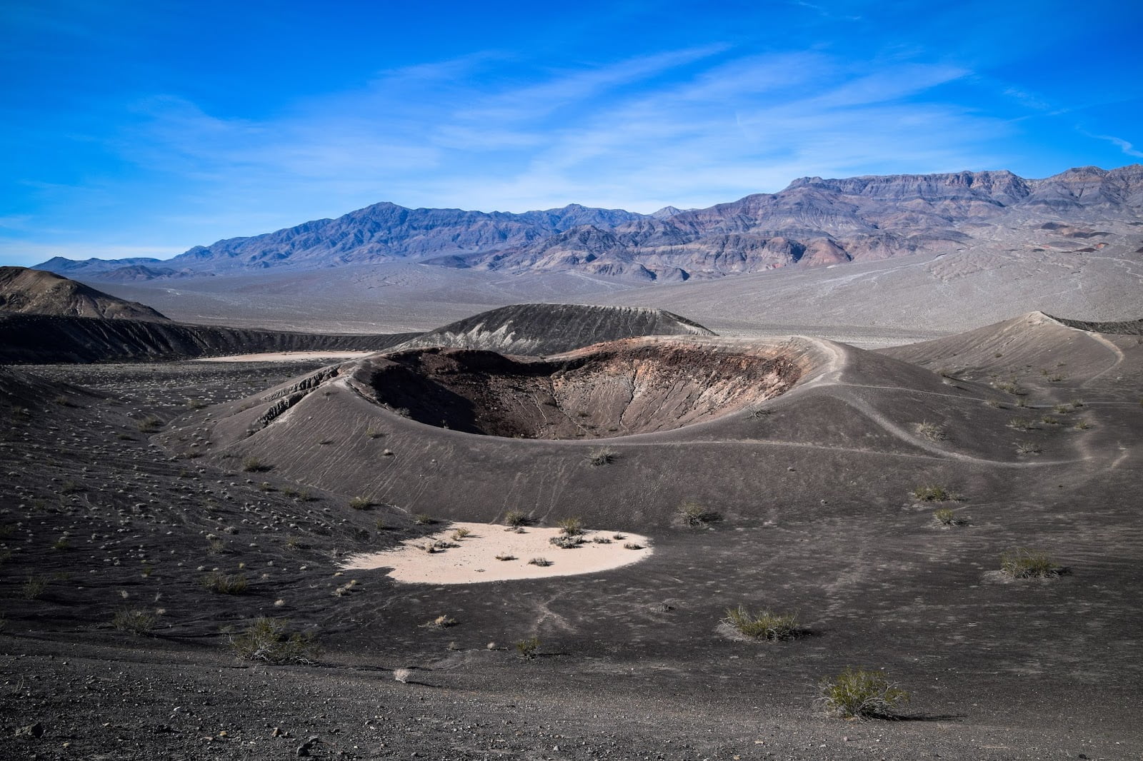 Desde el camping cerca de las dunas salimos temprano al norte del parque. Death Valley es un lugar enorme y para ir de un lugar a otro hay que conducir muchos kilómetros, se necesitan varios días para poder ver decentemente el parque, a parte de los lugares más turísticos. Por el norte se encuentra un lugar único en el parque, es el llamado Ubehebe Cráter. Llegando a él se puede comprobar como va cambiando el paisaje a un paisaje más negro, claramente volcánico y sin casi vida vegetal. Como el nombre índica se trata de un cráter, está inactivo desde hace muchos años y puedes caminar por él por su largo borde que rodea todo el cráter. Cerca se encuentra su hermano, más pequeño pero más bonito, Little Ubehebe. Hay varios senderos que se entrecruzan etre ellos pudiendo andar horas si quieres con vistas a los cráteres, una visita bastante espectacular, sobre todo para un amante de los volcanes como lo soy yo. Mi favorito hasta el día de hoy sigue siendo el Strombolide las islas Eolias.