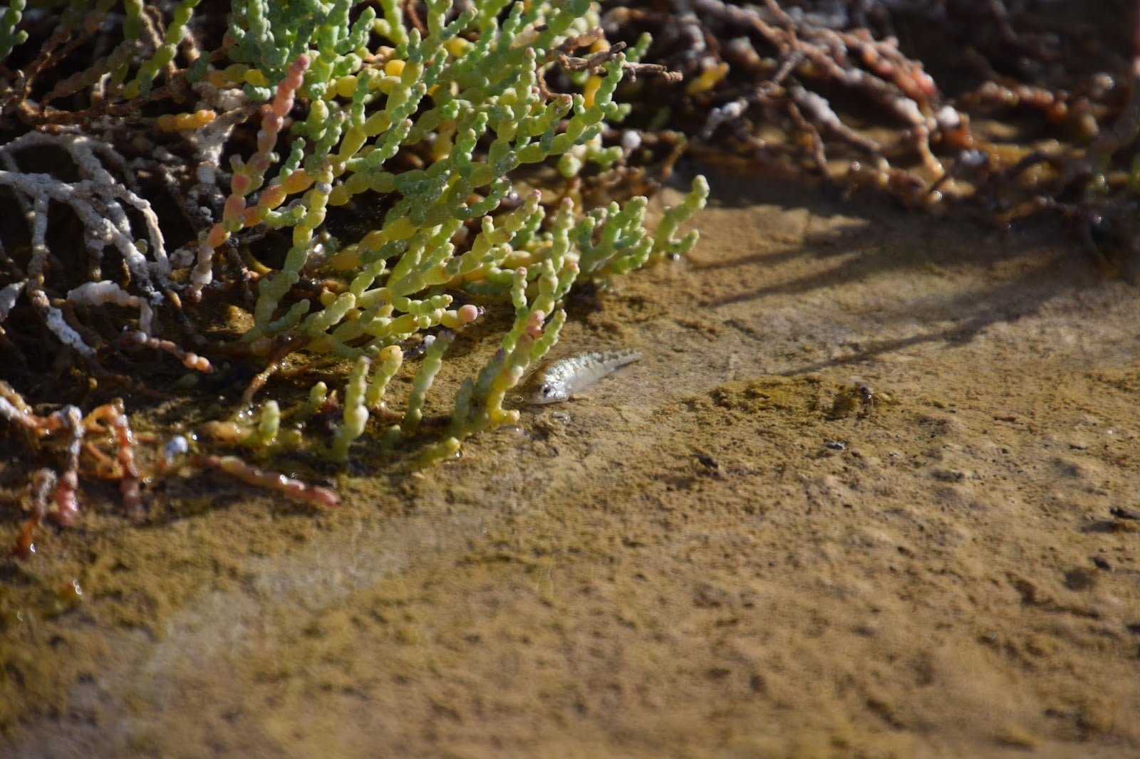 Más al sur del parque, acercándonos a nuestro camping, se encuentra un sendero muy fácil y corto llamado Salt Creek Interpretative Trail. Es un sendero que se hace parcialmente por un camino hecho de madera que va a lo largo de un riachuelo salado. Un riachuelo que esconde un tesoro en él. Es aquí donde viven unos super-héroes de un lugar que se llama Valle de la Muerte debido a sus extremos para poder sobrevivir. En el riachuelo habita un pez diminuto llamado pupfish, un pez que ha ido evolucionando a lo largo de la historia y que aguanta viviendo en un riachuelo salado con temperaturas extremas tanto positivas como negativas y con una sequía que a veces solo deja charcas. Increíblemente este pez sobrevive a estás condiciones haciéndolo para mi, un super-héroe en forma de pez. Hay muchos y son fáciles de ver, suelen estar en grupos.