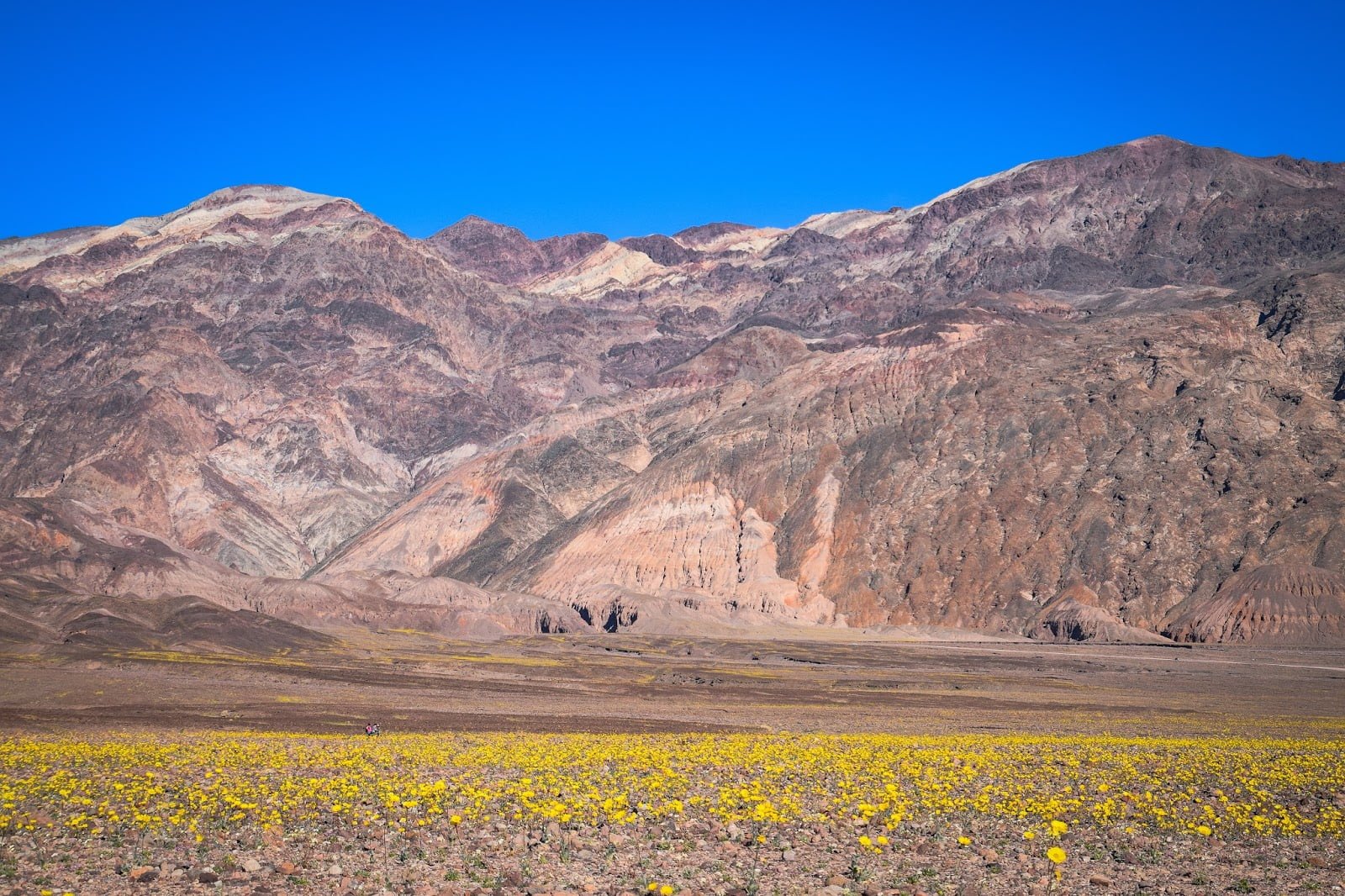 Fueron tres días visitando el parque haciendo caminatas, yendo a miradores espectaculares y conduciendo por sus paisajes extraterrestres. Tuvimos la suerte de que fuera invierno haciendo mucho más agradable la visita a uno de los lugares más calurosos y áridos del planeta, ha sido en este lugar donde se ha registrado la temperatura más alta de todo el planeta, ¡56,7 grados centígrados! Febrero puede ser uno de los mejores meses del año para visitar el parque y por eso empezamos nuestra ruta de los Estados Unidos por los desiertos, sabíamos el calor que suele hacer por aquí y lo queríamos evitar, aún así hizo más calor del esperado pero un calor soportable y a veces muy agradable, por este calor inesperado la primevera llegó prematuramente, siendo una de los invierno/primavera con más flores de los que se recuerdan (fue noticia incluso en Bélgica). Por la noche si que hacía frío, como en todos los desiertos, la temperatura baja precipitadamente pasando hasta frío en nuestra tienda de campaña.