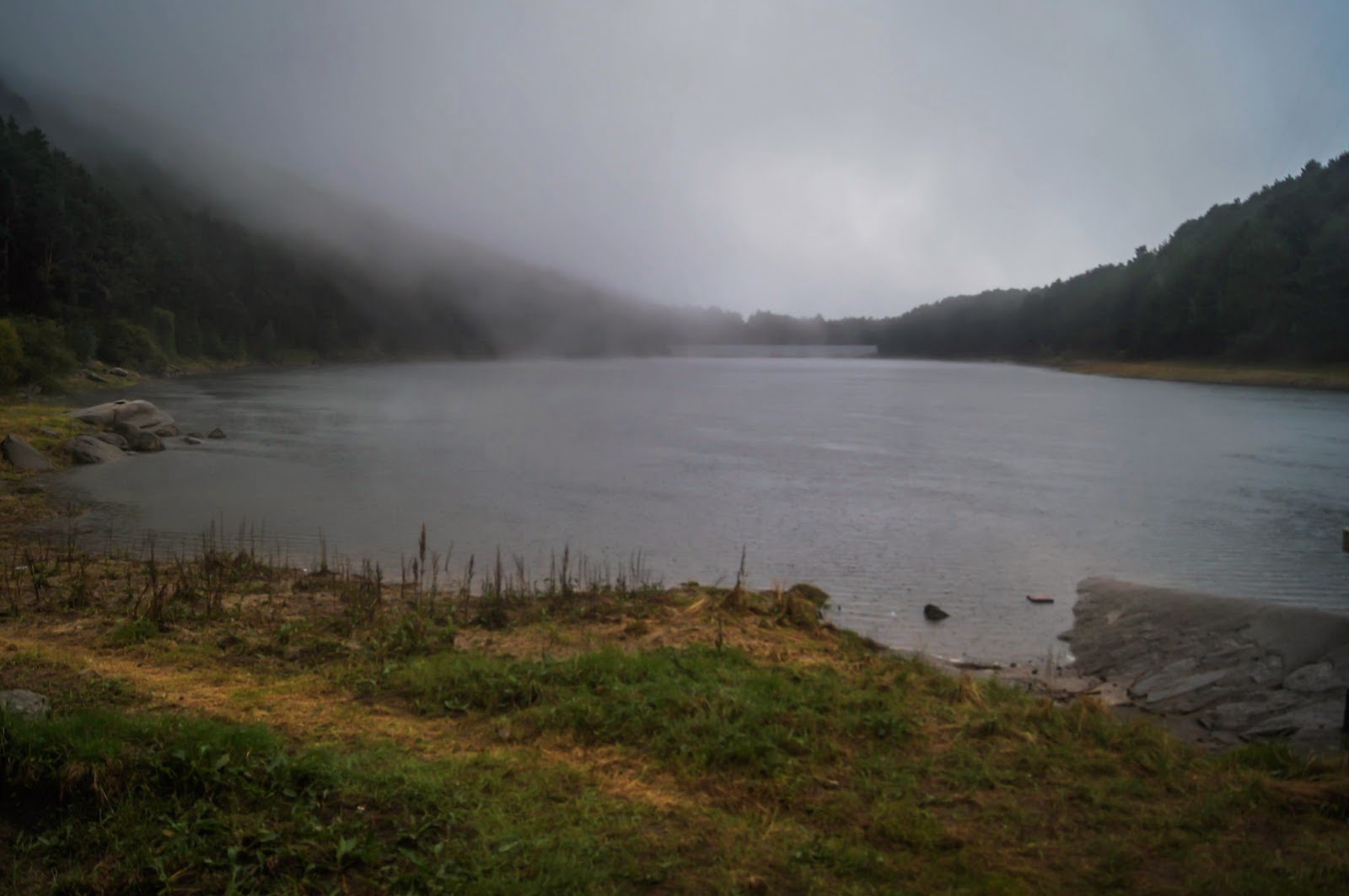 Cuando estábamos llegando al estanque tuvimos la mala suerte de que se pusiera a llover, tapando también todas las vistas de alrededor del lago, solo podíamos ver el agua y teníamos que estar con el paraguas en mano durante todo el sendero de vuelta, un tiempo muy desapacible para estar andando en el campo pero fue lo que nos tocó.