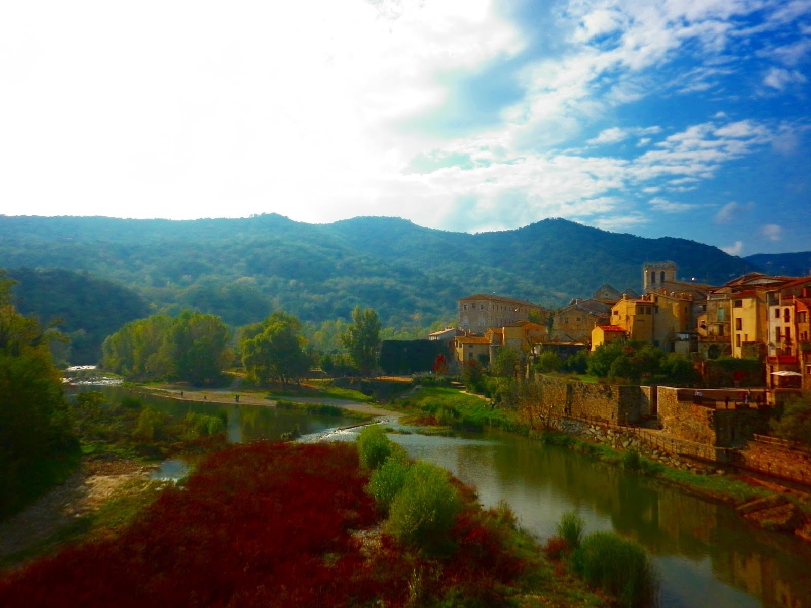 Las vistas de alrededores tampoco tenia desperdicio, todo muy verde y bonito, la ciudad esta situada en la comarca de Garrotxa donde se encuentra el «Parque natural de la zona volcánica la Garrotxa» en el extremo oriental de los Pirineos.