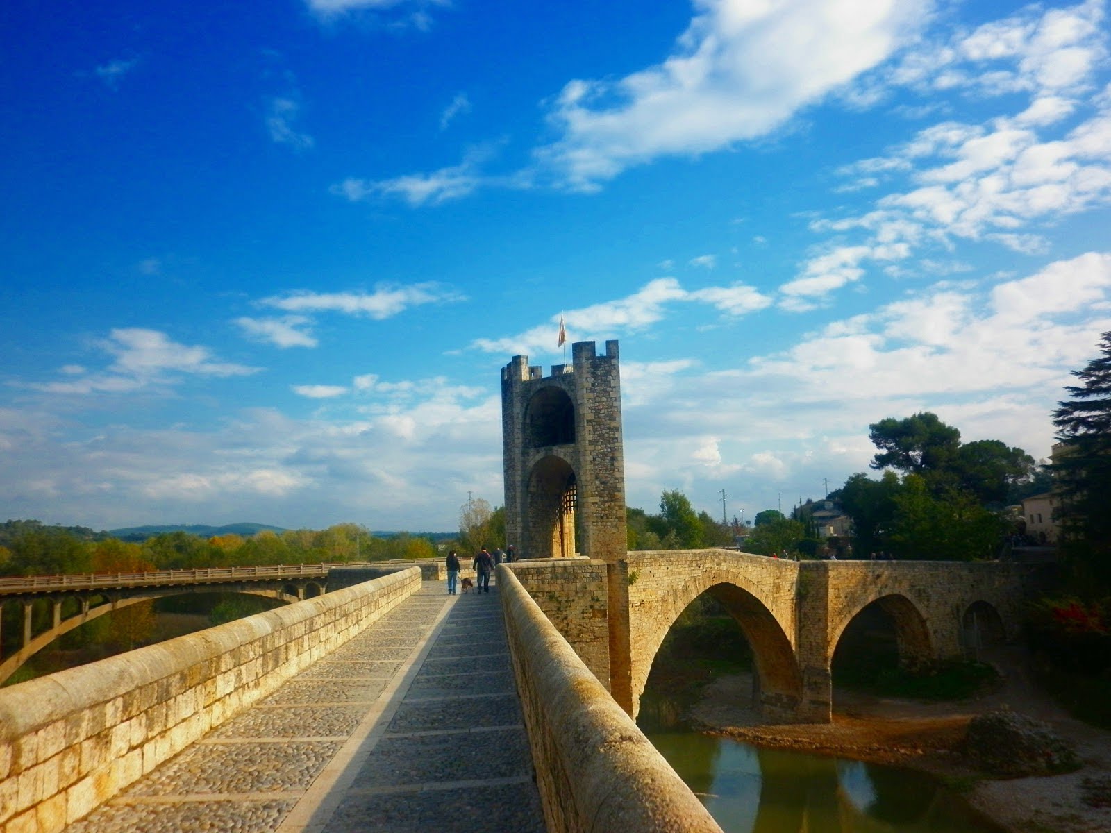 La entrada a la ciudad es espectacular y se puede sacar la foto mas típica, creo que es la foto mas sacada de esta ciudad sin duda, donde se puede ver el puente que pasa por lo alto del rio «Fluviá» con la puerta al fondo al estilo medieval, esta imagen te hace imaginarte en como seria antiguamente en esa época y te intentas poner en situación, me encanta cuando un sitio así te lo provoca.