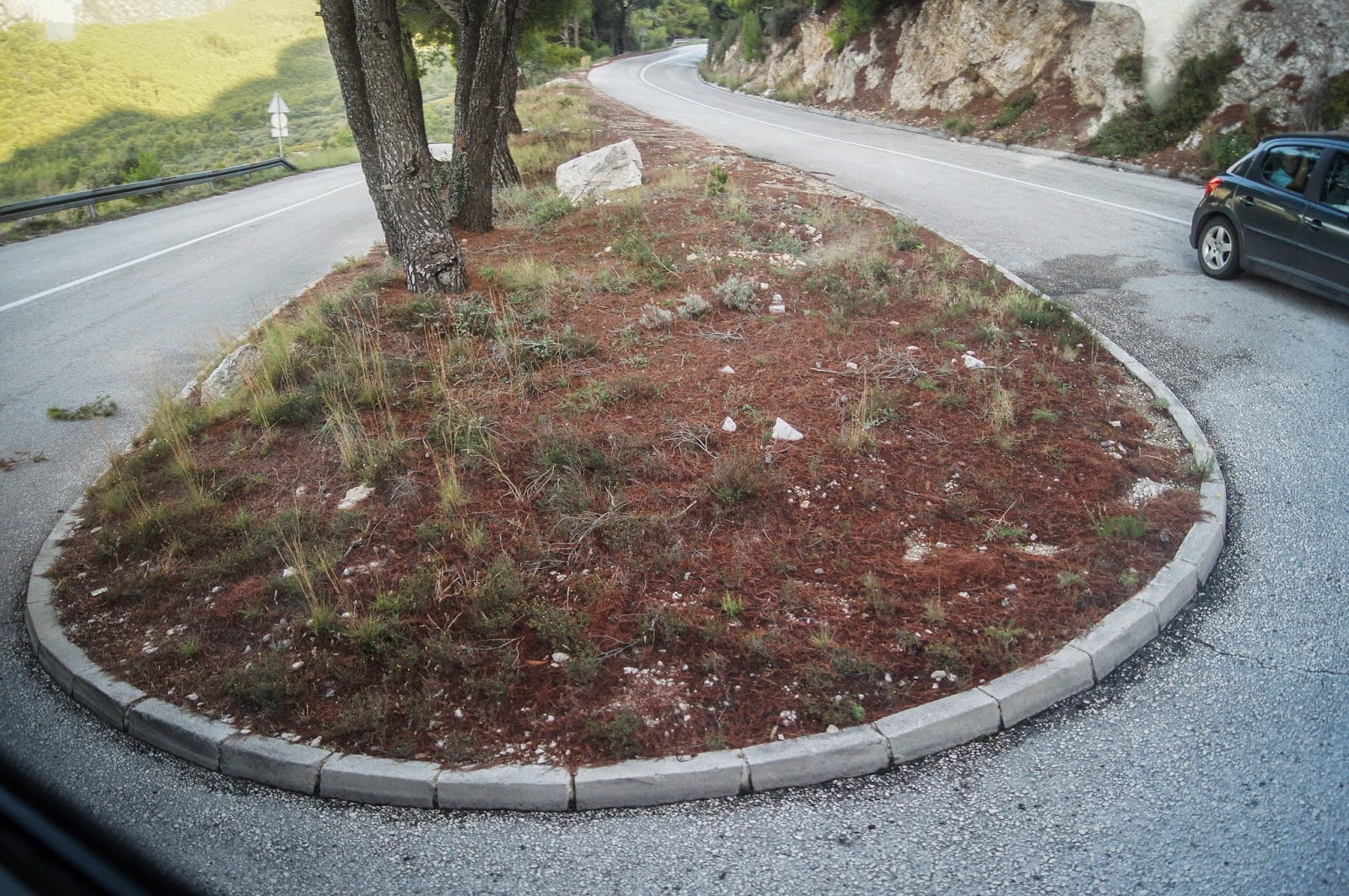 Por el camino nos cruzamos con la localidad de Ston y su impresionante muralla, lugar también conocido por sus ostras. Al pasar por allí nos arrepentimos un poco de no haber parado, esa muralla bien lo merecía, al menos pudimos sacar una foto por la cristalera del autobús. Una ruta que tenía curvas endemoniadas como las que veis a continuación con lo que el camino se alargaba más de lo que pensábamos, a quien leches le importa con estás vistas…