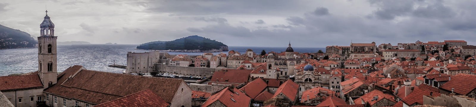 El paisaje llegando hasta Dubrovnik se iba haciendo más y más bonito, con sus acantilados, sus montañas altas y verdosas, sus playas y sus islas cerca de la costa, sus aguas azules turquesas cristalinas, fue un más que agradable amanecer. Conducir con tu propio coche y parar donde te apetezca por aquí hubiera sido lo suyo pero Croacia lo haríamos en transporte público de principio a fin. El tiempo, por desgracia, se fue poniendo feo y así permanecería durante a lo largo del día.