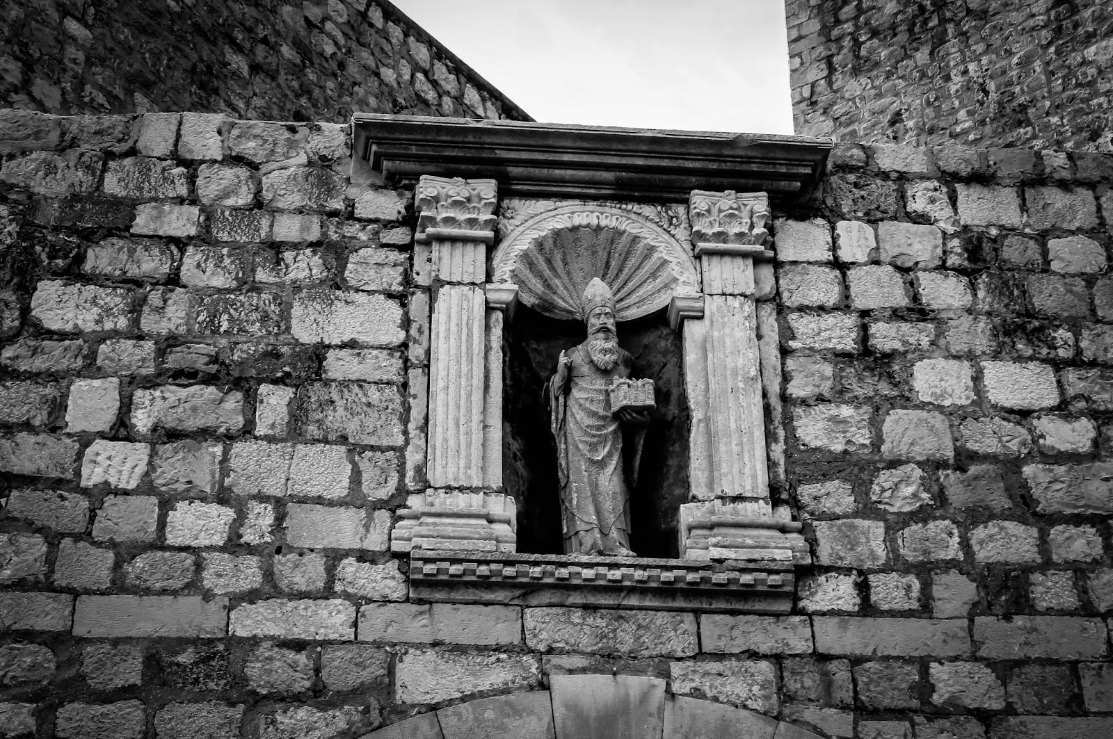 Por la ciudad pudimos ver la figura del patrón de Dubrovnik por varios lugares, se trata de San Blas, patrón que sostiene en su mano izquierda a la ciudad vieja en su mano. Puedes verla por ejemplo en lo alto de la iglesia de San Blas o en alguna de las puertas de la ciudad vieja.