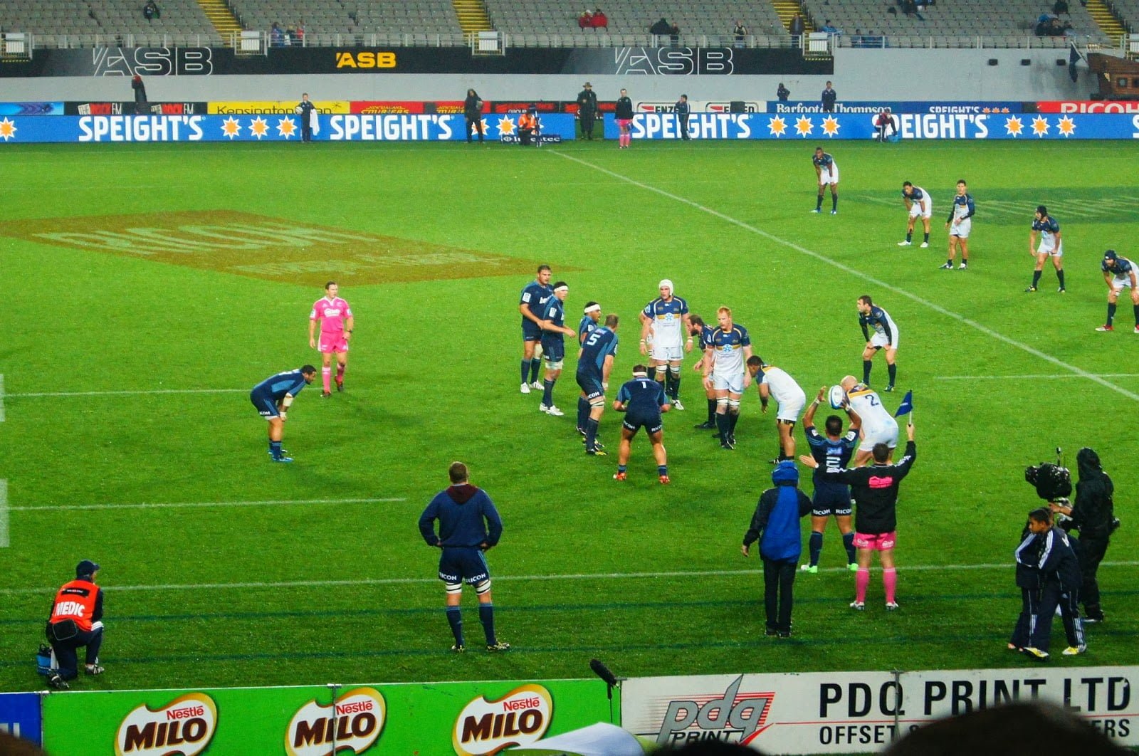 Ese primer día cumpliría una de mis metas desde que llegué a Nueva Zelanda y no es otra que la de ir a un partido de rugby en vivo y en directo. Me hubiera gustado acudir a un partido de los famosos All Blacks (El equipo nacional de rugby) campeones del mundo pero nunca se dio el caso. Fuimos a ver un campeonato de rugby en el que compiten clubs de países como Nueva Zelanda, Australia o Surafrica. Fue en el bonito estadio de Eden Park y jugaban los blues que es el equipo de Auckland contra los Brumbies, equipo de la capital australiana, Camberra.