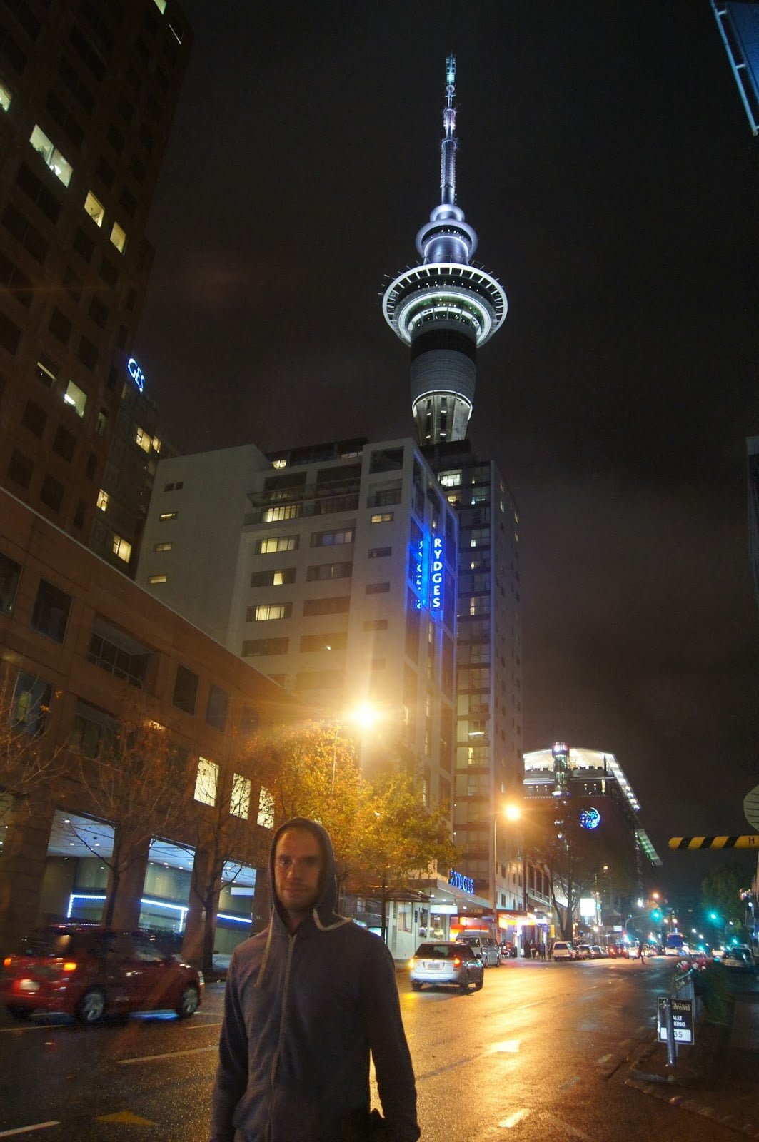 El tiempo era horroroso y nos tuvimos que sentar debajo de un tejado. Mucho ambiente pero pudo ser más si no es por el tiempo tan malo. No solo hubo rugby si no también grupos bailando, cantando o sorteando cosas entre el público. El show en un partido de rugby aquí es constante. Aunque no entienda mucho de rugby los disfrutamos mucho (en realidad solo Álvaro, a Perrine le daba un poco igual) Los blues, equipo local, perdió pero estuvo emocionante hasta el final. De vuelta a casa pudimos ver la gran torre de telecomunicaciones de Auckland que predomina en el bonito skyline de la ciudad, especialmente cuando brilla en la noche, me gustan estos edificios aunque no sean muy bonitos, tienen algo que me gusta, será por lo grandes que son. Ya hemos visto alguno así en Dusseldorf, por ejemplo en el que subimos hasta arriba del todo.