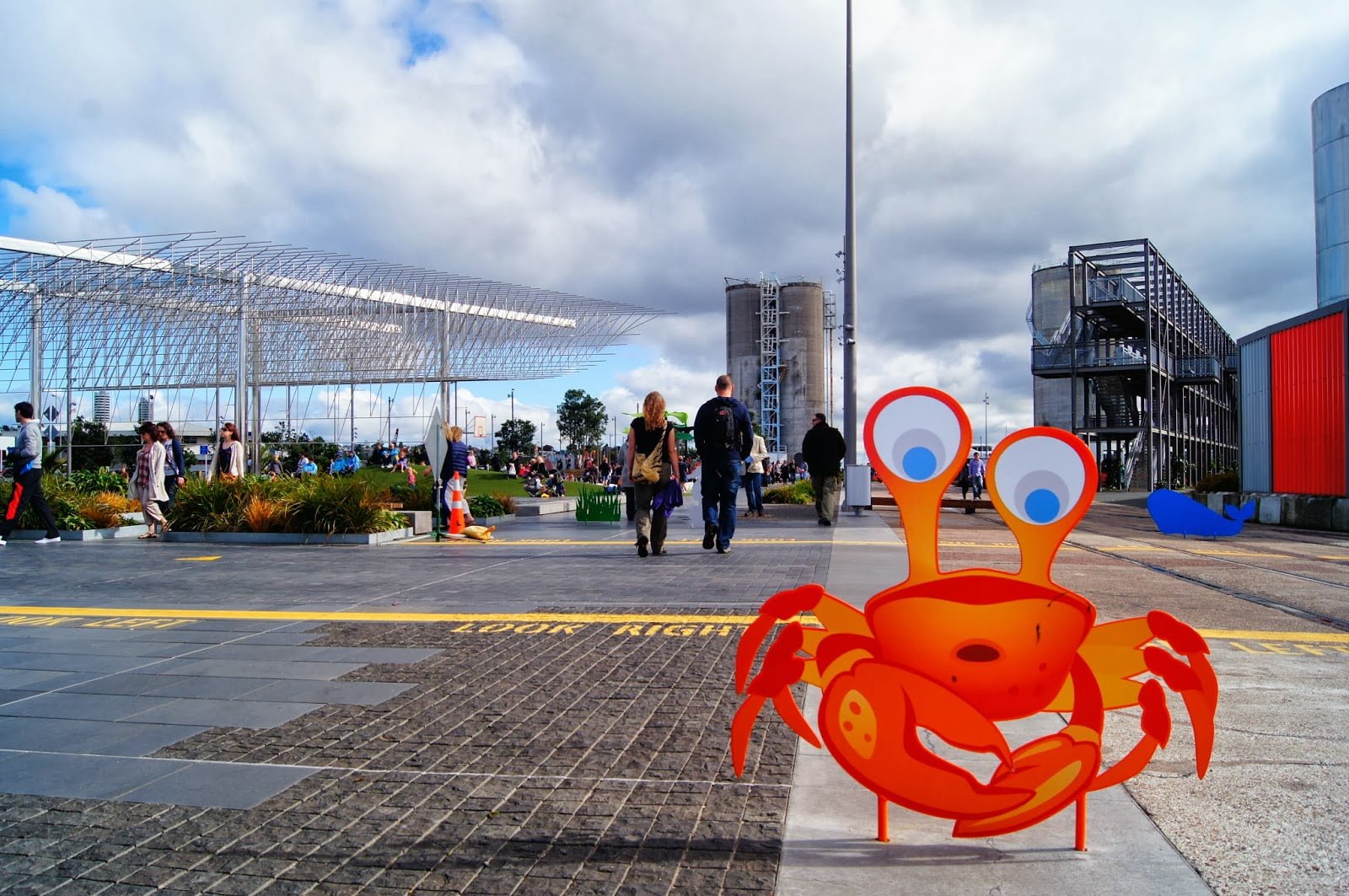 El lugar se llama Wynyard Quarter por el que dimos un paseo por sus alrededores, tiene algún edificio curioso y especial, la zona parece muy nueva, se nota el rápido crecimiento que está teniendo esta ciudad. Hay también como un mercado de pescado en el que puedes encontrarlo relativamente barato, además de comerlo por allí. Hay mucha gente que viene aquí para comer pescado o para comerse unas fish and chips como están acostumbrados, cuando estábamos por aquí había mucho ambiente por toda la zona.