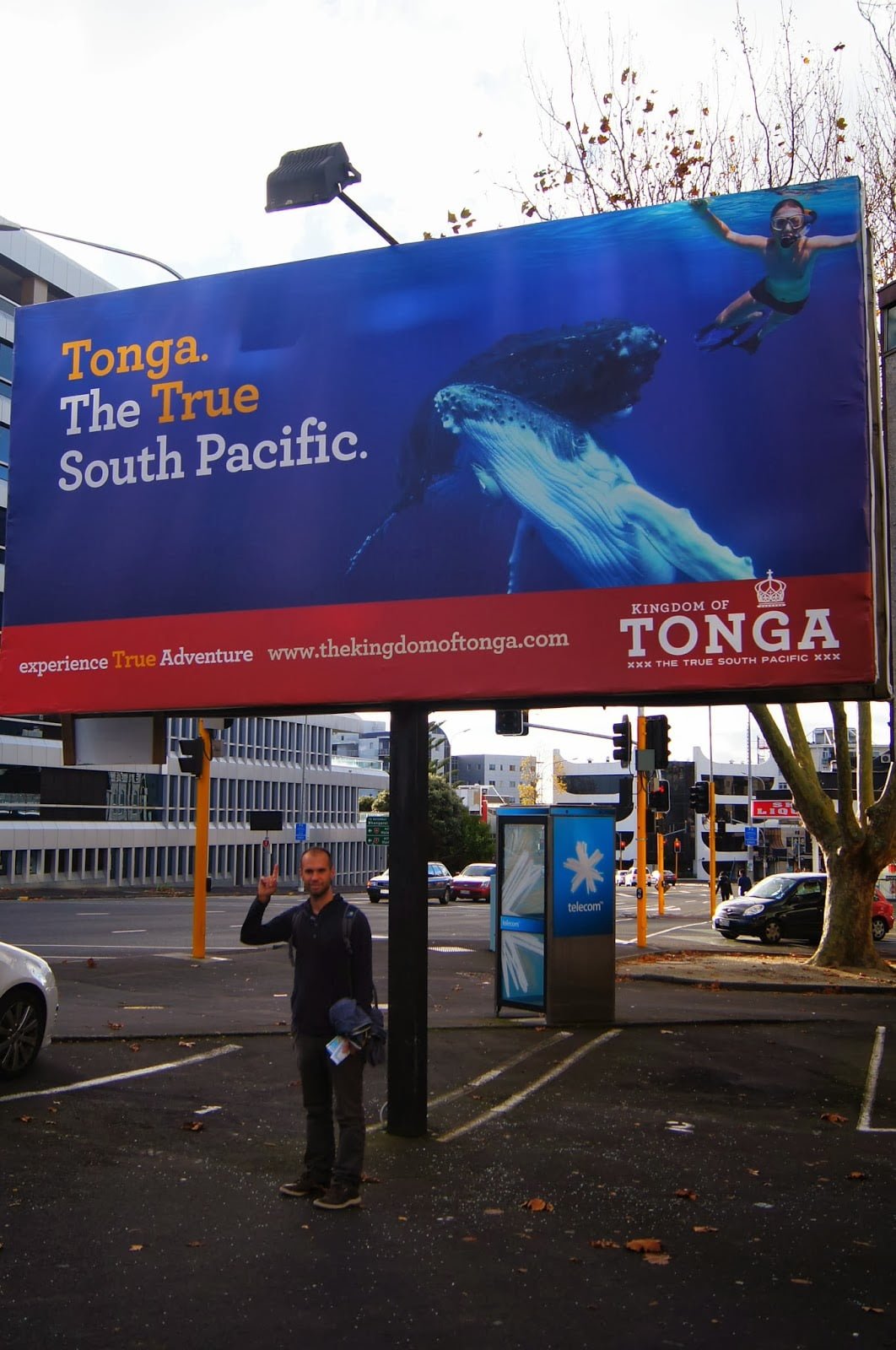 El día siguiente nos lo tomamos tranquilo, teníamos que preparar las mochilas para nuestro próximo destino que era nada más y nada menos queTonga, un reino en el Pacífico sur, un sueño que se hacía realidad. También fuimos al centro a cambiar algunos dólares que teníamos de la furgoneta a Tonga Pa’angas, la moneda de ese país. Estos días por Auckland también pudimos ver que estaban promocionando el país por la calle con grandes carteles, poniendo la ballena como protagonista.