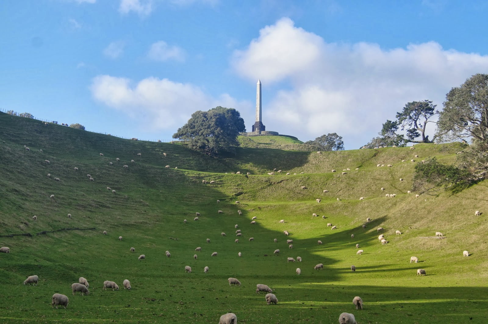 Desde Mt Eden seguimos bajando por el otro lado para seguir con el camino que nos llevaría a otro gran parque pasando antes por unas calles del barrio de Epsom. El parque se llama Cornwall park y lo que viene después es el One Tree Hill, una montaña con ovejas en mitad de la ciudad, imagen rara la que se podía ver allí.