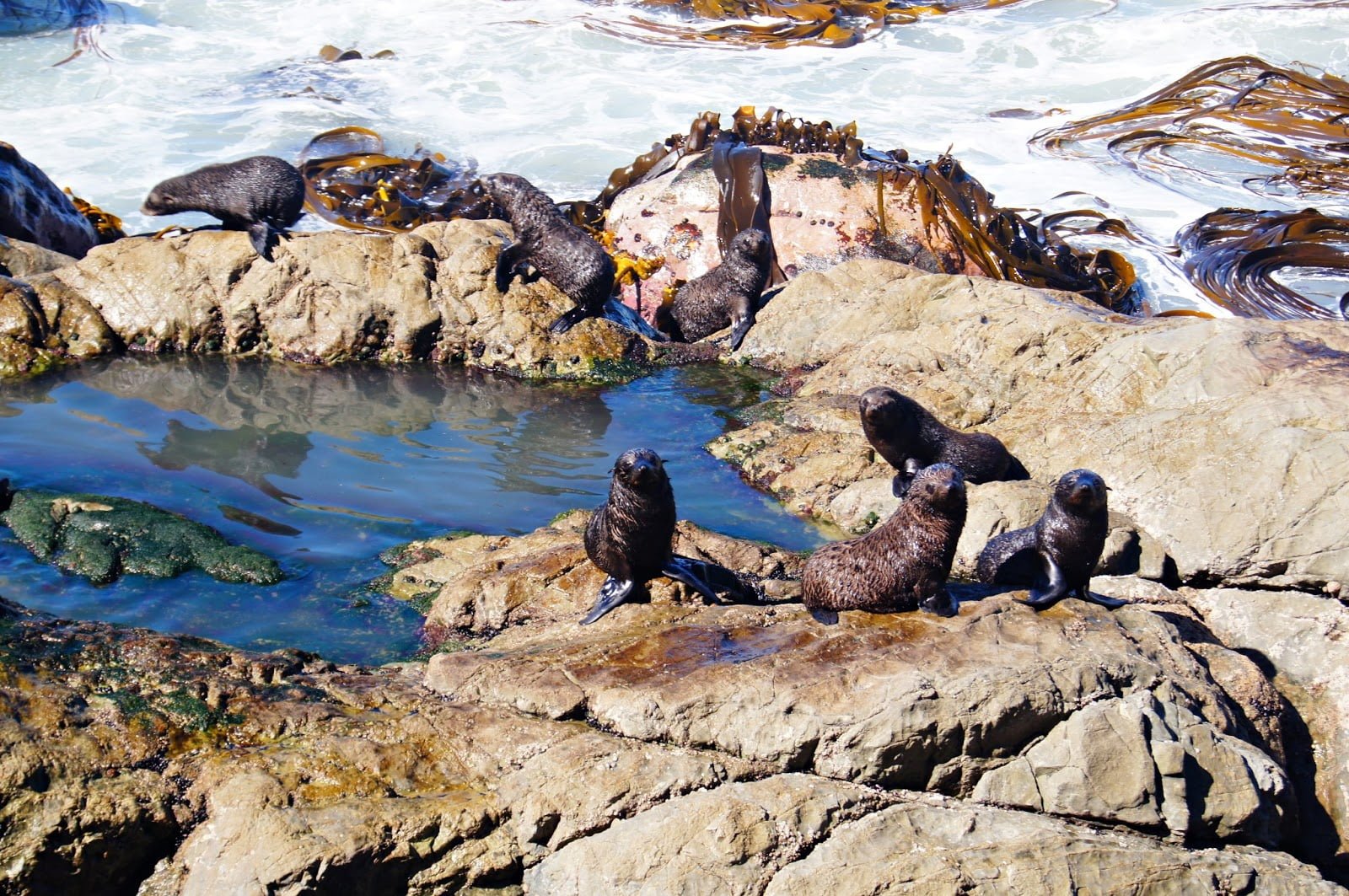 No paran de jugar y son muy graciosas. Siguiendo la carretera y cerca del mirador esta el Ohau stream, un lugar muy especial de Nueva Zelanda. Metiéndonos por un sendero rio arriba nos encontramos con una sorpresa que nunca me ibas a imaginar. Eran decenas de focas pequeñas ¡bañándose en pozas de agua dulce! Solo hay cachorros ya que las madres no pueden llegar hasta aquí, esta lleno de focas juguetonas dándose un chapuzón o descansando al sol, se calcula que pueden llegar a haber alrededor de 200, mejorando las habilidades de nadar y relacionándose con otros cachorros. Muchos se quedan unos días pero vuelven al mar con las madres para ser alimentados con su leche materna. Estos cachorros solo se pueden ver por aquí entre los meses de abril y octubre, tuvimos mucha suerte de llegar sin saberlo y coincidir con ellos.