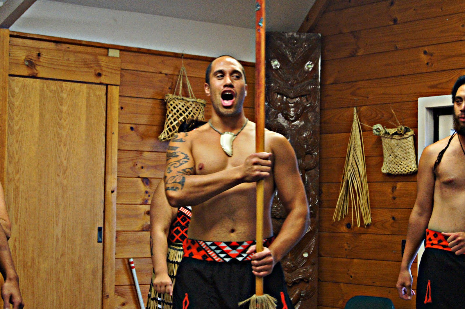 por el pueblo con un show que incluye el famoso Haka y canciones locales. Lo