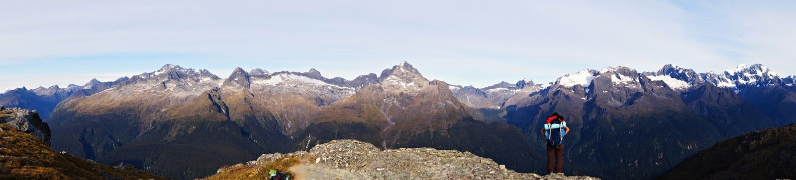 El cielo era muy despejado y se veía todo el contorno de las montañas nevadas de alrededor, miraras donde mirabas era impresionante. También podíamos ver desde arriba donde habíamos dormido en nuestra tienda de campaña y el lago Harris. La vuelta al coche fue rápida aunque al final se hizo un poco largo, por el camino nos encontramos una vez mas con Luis y con Misa con los que nos quedamos un rato a comer con las vista desde Falls Hut. Dos días maravillosos los que pasamos por el gran Routeburn Track.