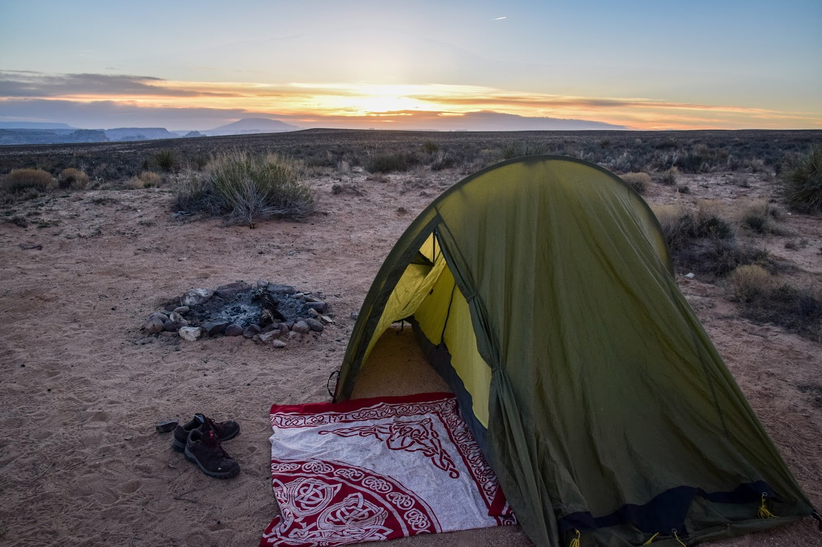 Llegamos ya casi de noche y nos fuimos directamente a acampar en mitad de la nada justo en la frontera con Utah. No podíamos esperar más para ver el famoso Horshoe Bend así que decidimos empezar el día con buen pie y salir a ver el amanecer allí mismo, tocaba madrugar. Desde donde acampamos estaba como a 20 minutos en coche pasando primero por Page donde paramos en McDonalds para llevarnos un café gigante de 1$ y así calentarnos las manos, a estas horas aún hace mucho frío en invierno. Para ver el Horshoe Bend no hay que andar demasiado, desde el parking son unos 2km ida y vuelta.