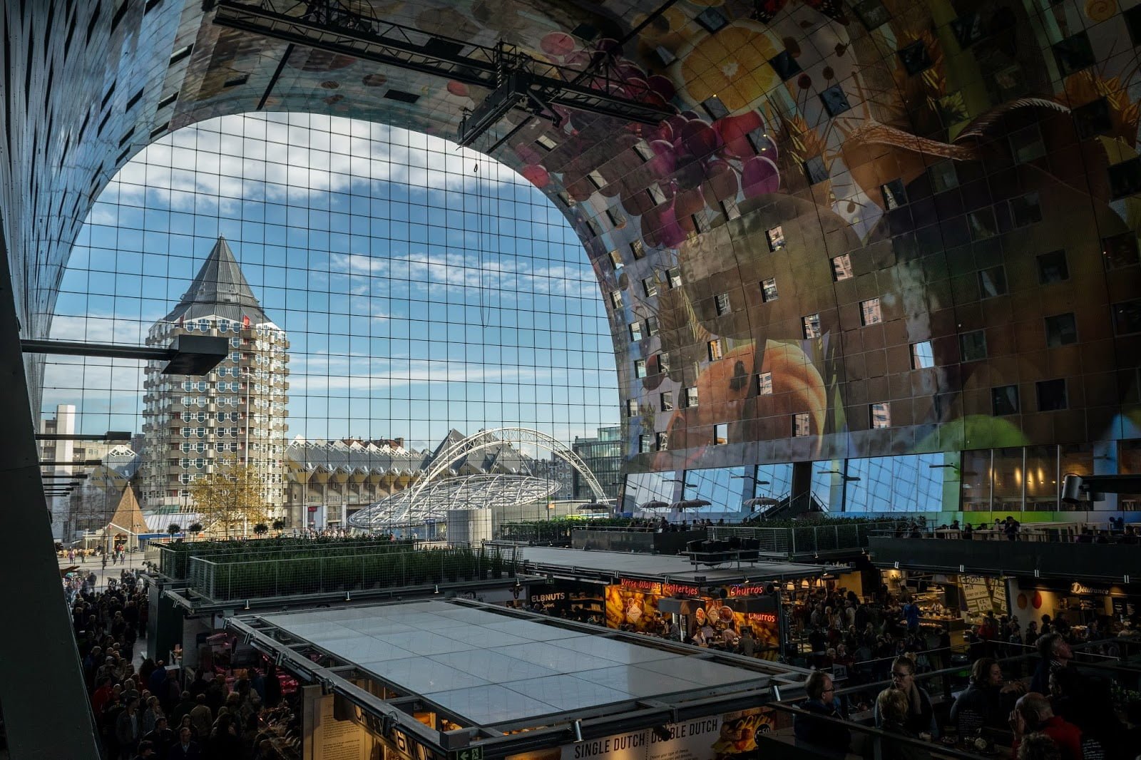 Róterdam es la segunda ciudad más grande del país, una ciudad que posee el puerto más grande de Europa y uno de los más grandes del mundo. Su terrible historia nos cuenta que en 1940 fue atacado por el ejercito nazi, dejando la ciudad hecha cenizas salvo algunos edificios que a día de hoy son símbolo de la ciudad. En su reconstrucción, parece haber habido una competición de arquitectos peleando por diseñar el edificio más raro y llamativo de Róterdam. Y es que sus edificios es lo primero que te llama la atención visitando esta ciudad. – Una imagen vale más que mil palabras – dice el dicho. Es por eso que en este post os dejo con un paseo fotográfico de nuestra visita reciente a esta ciudad de los Paises Bajos.
