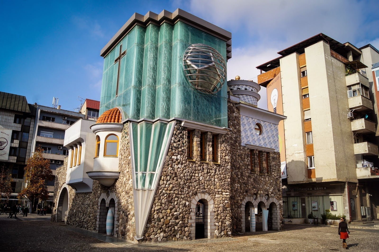 También pasamos por una iglesia cristiano-ortodoxa a nivel -1 del suelo bastante curiosa, con un edificio bastante extraño por fuera que me hacía pensar en Asia.