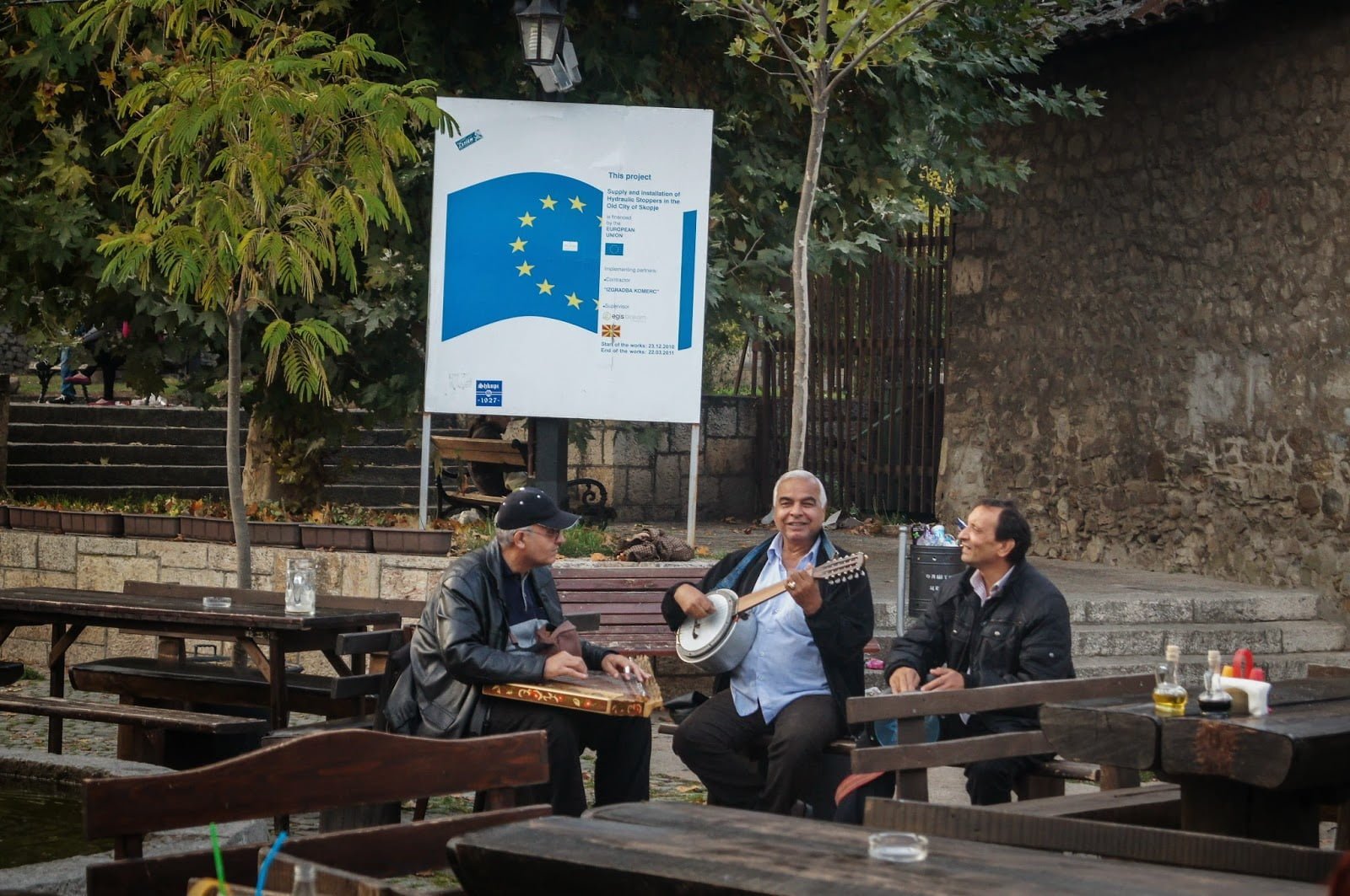 Nuestra mala experiencia con los gitanos no acabaría ahí, a la mañana siguiente yendo por el mismo río hacia el centro, en pleno día (pensamos que de día no habría problema), otro par de gitanos empezaron a perseguirnos con la excusa de pedirnos la hora pero que iban con unas intenciones que se veía a kilómetros, literalmente echamos a correr. Perrine no quiso pasar más a la vera del río para el resto de nuestra estancia en la ciudad. Así que os dejo un consejo: Cuidado con los gitanos y tratad de no andar solos, también os recomiendo evitar «el paseo marítimo» que hay pegado al río, fue ahí donde tuvimos los «ataques». Es algo de los que los macedonios mismos se quejan, los gitanos de Skopje son los que mayormente crean problemas y lo pudimos comprobar en nuestras propias carnes.