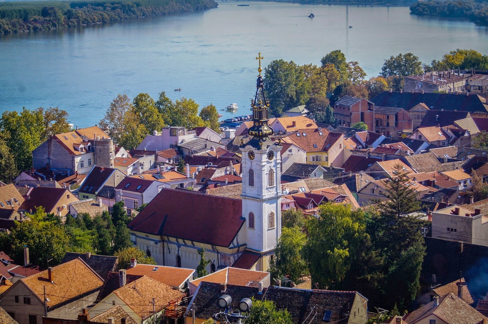 Al otro día nos fuimos a conocer Zemun, un barrio muy acogedor de Belgrado que antiguamente era un pueblo en sí y que fue absorbido por la expansión de la capital. Para llegar hasta aquí cogimos un autobús preguntando a la gente en la calle, tuvimos que comprar el ticket de antemano. Hacía un domingo con un tiempo fabuloso y una tranquilidad palpable . El sol radiante invitó a la gente a recorrer este bonito paseo marítimo que va junto al río. Desde el paseo junto al río de donde se tenían bonitas vistas del río Danubio fuimos directamente a la torre de Gardos para tener las mejores vistas sobre Zemun. No nos decepcionó cuando llegamos ahí arriba aunque no nos esperamos tener que pagar para ello, nos costó unos dos € al cambio el poder entrar.