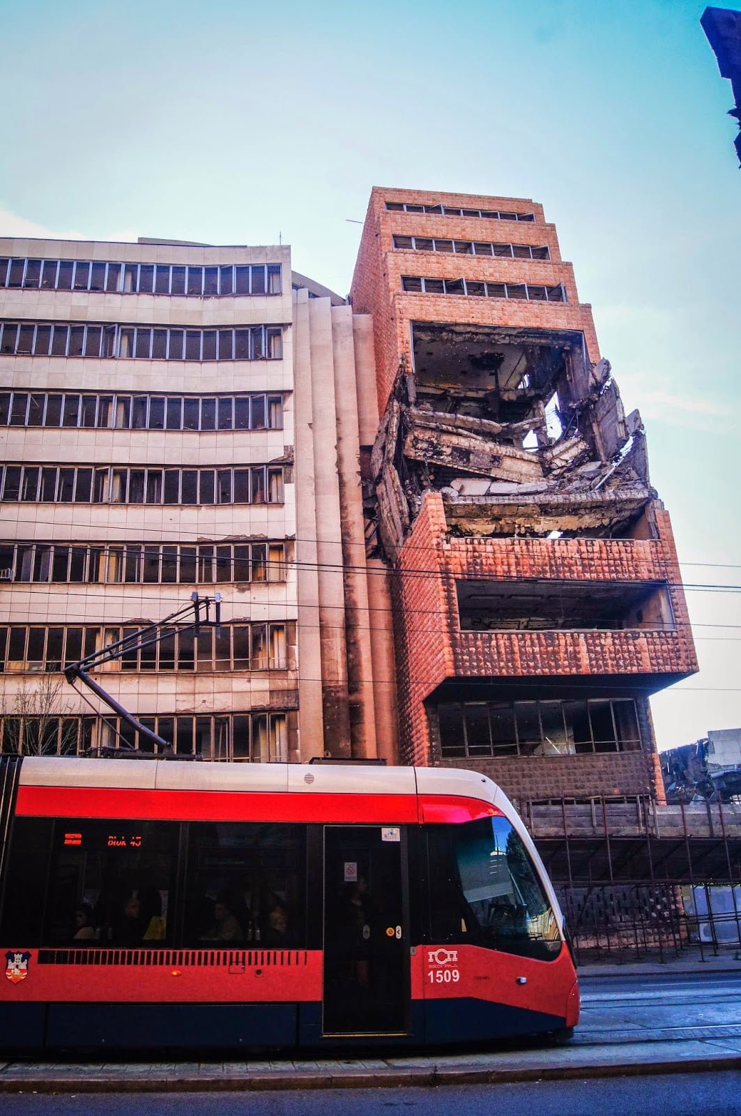 Una de las cosas que más sorprenden de esta ciudad son sin duda sus edificios bombardeados que milagrosamente aún se mantiene en pie y que están en mitad de la ciudad como si nada hubiera pasado. Estos edificios fueron bombardeados durante el año 1999 a manos de la OTAN para de esta manera parar los pies a la República Federal de Yugoslavia (Serbia) con su guerra contra Kosovo. El país fue bombardeado durante varios meses sin pre-aviso y sin la autorización de la ONU. Declarado por muchos como crimen de guerra y cuestionado por su legalidad